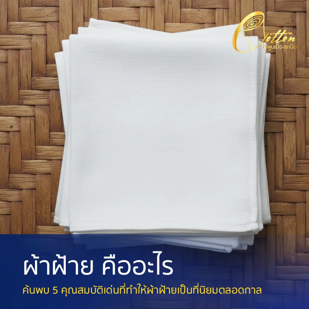 ผ้าฝ้ายคืออะไร? สัมผัสความสบายจากเส้นใยธรรมชาติที่คุณต้องหลงรัก สารบัญ ยินดีต้อนรับสู่โลกของเส้นใยธรรมชาติที่ครองใจผู้คนทั่วโลกมายาวนาน นั่นคือ ผ้าฝ้าย หรือ (คอตตอน) ไม่ว่าจะเป็นเสื้อผ้าที่คุณสวมใส่ทุกวัน ผ้าปูที่นอนนุ่มๆ หรือแม้แต่ผ้าม่านในบ้าน ผ้าฝ้ายมักจะเป็นตัวเลือกอันดับต้นๆ เสมอ แต่คุณเคยสงสัยไหมว่า ผ้าฝ้ายคืออะไรกันแน่?